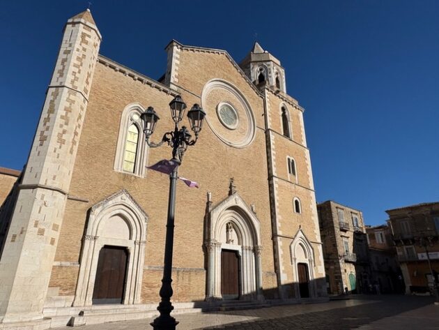 Chissà che aspetto magnifico doveva avere quando il suo skyline era solcato da minareti e cupole di moschee, e nel suo centro ci si poteva imbattere in un harem o in un serraglio! Proprio qui a Lucera, Federico II concentrò infatti quegli arabi che in Sicilia creavano disordini, che divennero motore dell’economia locale e furono talmente fedeli alla corona sveva da costituire la guardia del Corpo reale. Ai francesi e soprattutto al papato quest’isola saracena non dovette piacere più di tanto, per cui i mussulmani furono liquidati in breve tempo. Ecco perché la città conserva due splendidi monumenti gotici, piuttosto rari nel resto della regione che presentano elementi in romanico. Anche se quel passato sembra remoto, oggi, tuttavia, si possono ammirare, oltre ai monumenti più celebri, numerosi palazzi gentilizi e respirarvi un’atmosfera pacata e ‘nobile’. Saranno passati pure più di duecento anni, ma l’immenso orgoglio lucerino si avverte ancora oggi ascoltando il racconto di Simone, la nostra espertissima guida, che ci porta tra le strade di Lucera, la città foggiana, considerata la “Perla dei Monti Dauni”, nominata “Capitale Cultura Puglia 2025”; un riconoscimento di capitale regionale della cultura che ha portato a un anno ricco di eventi e iniziative, con l’obiettivo di valorizzare il territorio e il suo patrimonio.