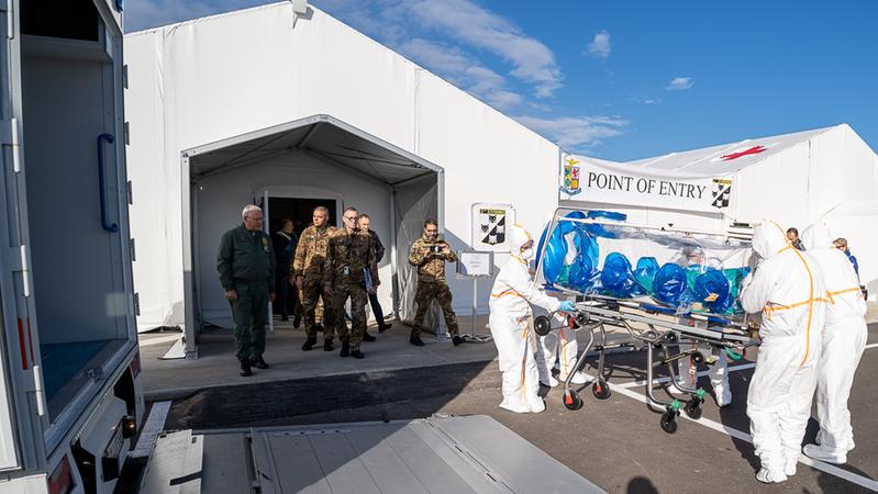 Guardando da fuori sedime aeroportuale, si vedono gli imponenti tendoni bianchi con la croce rossa. È l’ospedale da campo da 92 posti... Scopri di più