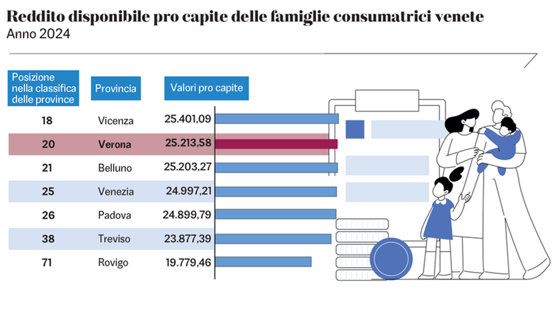 Il reddito a disposizione delle famiglie veronesi nel 2024 è cresciuto nel complesso del 3,2%, portando la provincia al 56esimo posto... Scopri di più