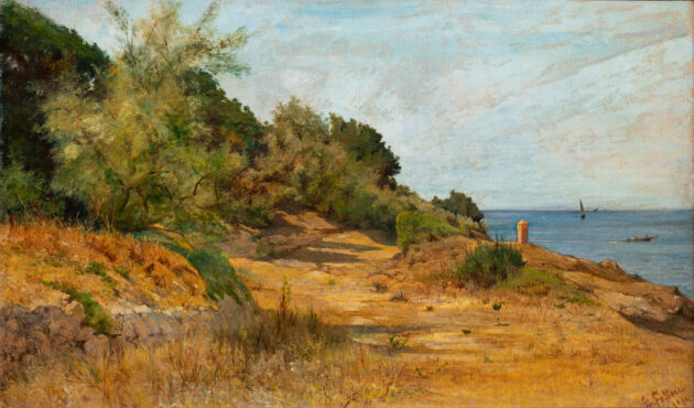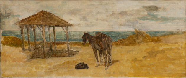 Ma la mostra racconta anche il forte legame dell’Artista con la terra e con il mare, “inventa” i piccoli quadri con visioni panoramiche del paesaggio, unisce storia e natura in una sola immagine e regala assolute chicche: infatti per la prima volta – giusto pochi passi dopo l’ingresso in mostra – è possibile ammirare nella sua completezza il dipinto “bifronte” che raffigura Una carica di cavalleria a Montebello. Una grande scena di battaglia, dipinta su tela nel 1862, che un intervento di restauro ha però rilevato avere sul verso l’abbozzo di una composizione storica di tema mediceo, avviata da Fattori alla fine degli anni ’50 e poi abbandonata.