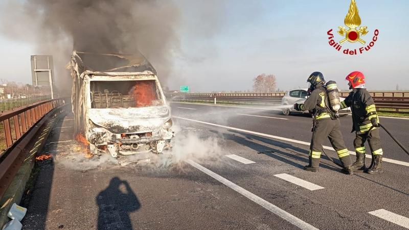 Furgone in fiamme sull'A22, coinvolto anche un mezzo in transito