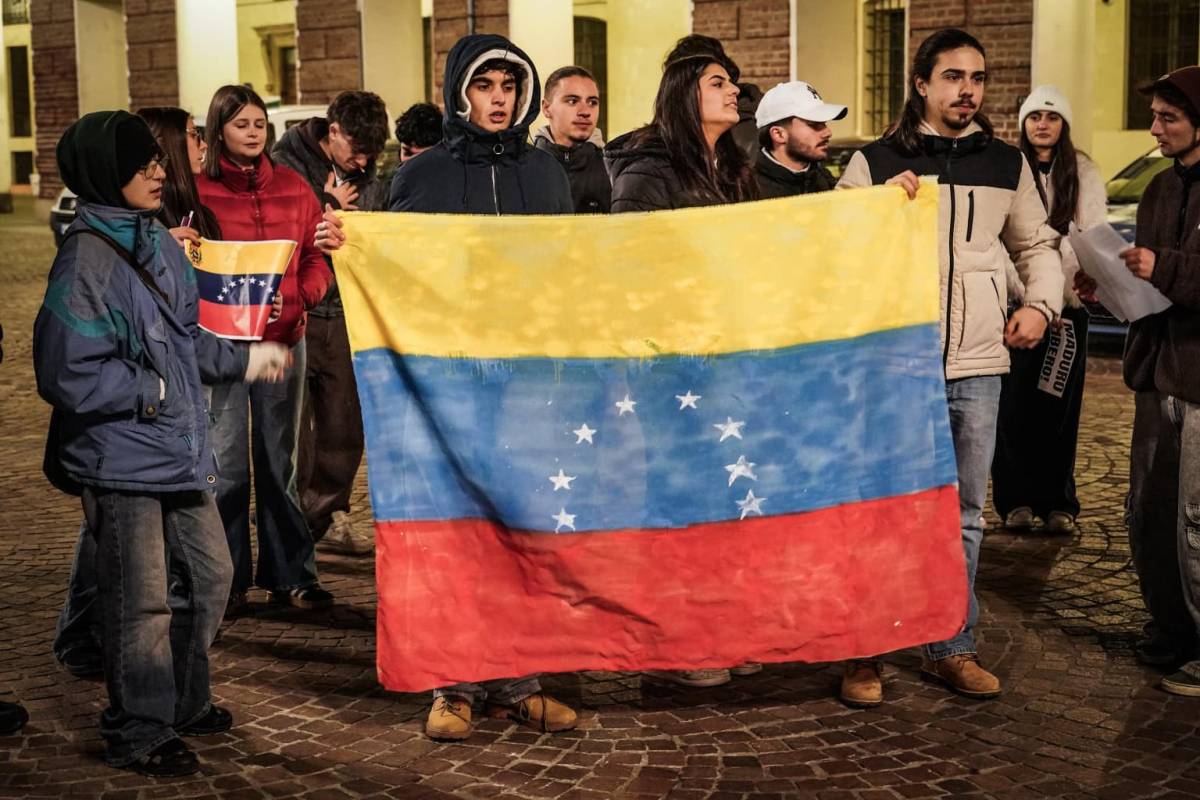 I venezuelani con i vessilli spintonati dai comunisti