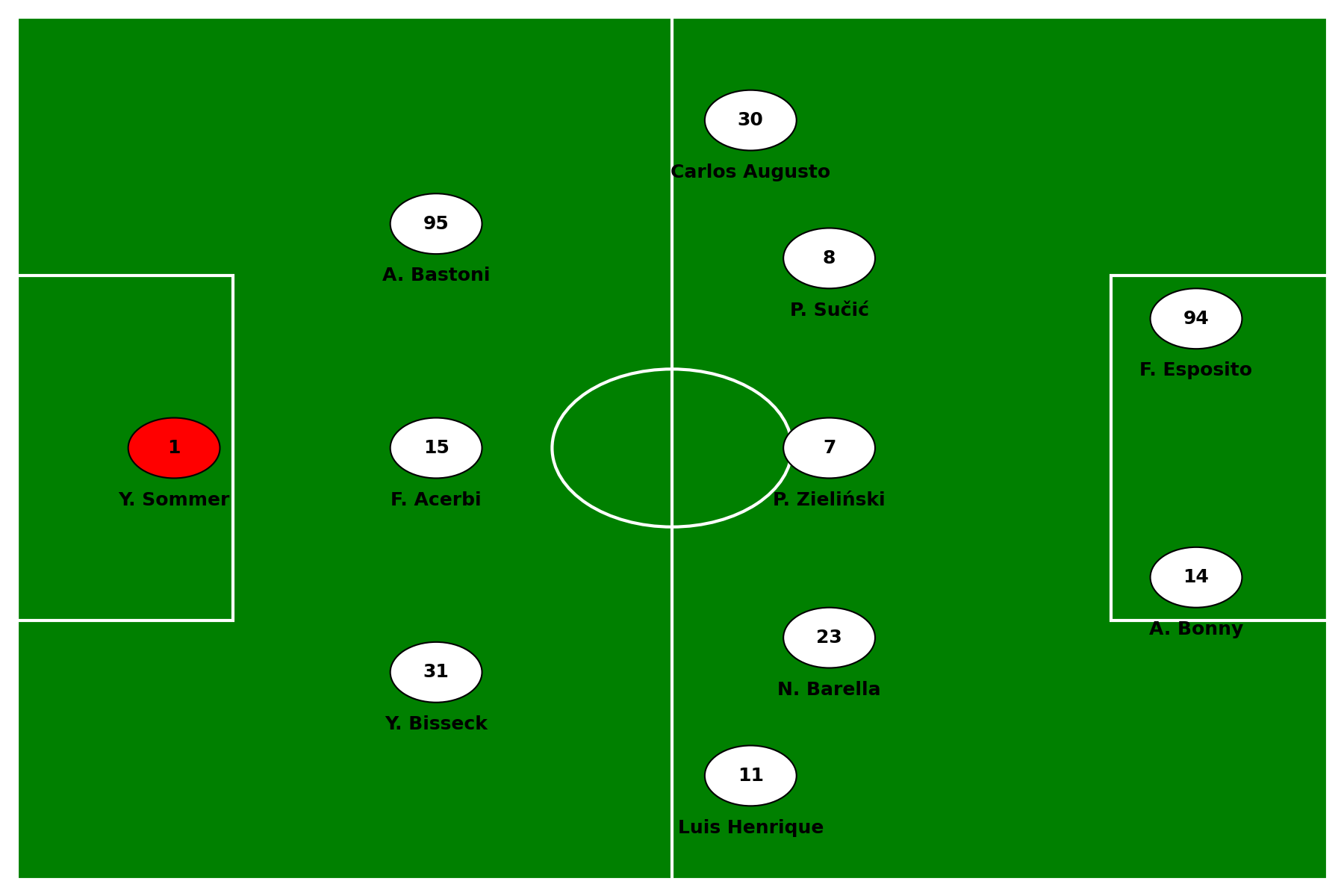 - Inter (3-5-2): Sommer; Bisseck, Acerbi, Bastoni; Luis Henrique, Barella, Zielinski, Sucic, Carlos Augusto; Bonny, Esposito.