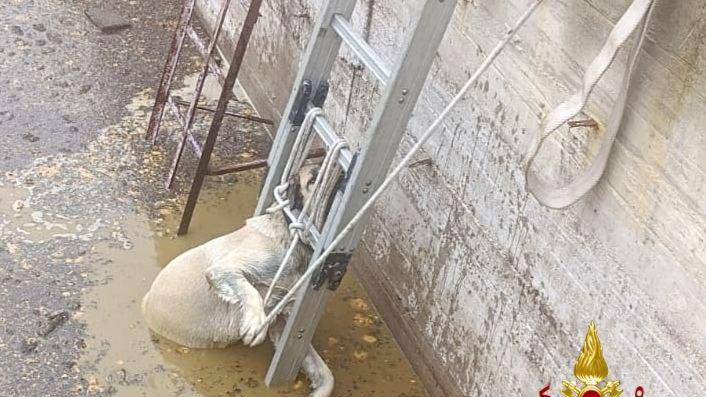 La cagnolona Gretel cade in una vasca di liquami: salvata dai vigili del fuoco