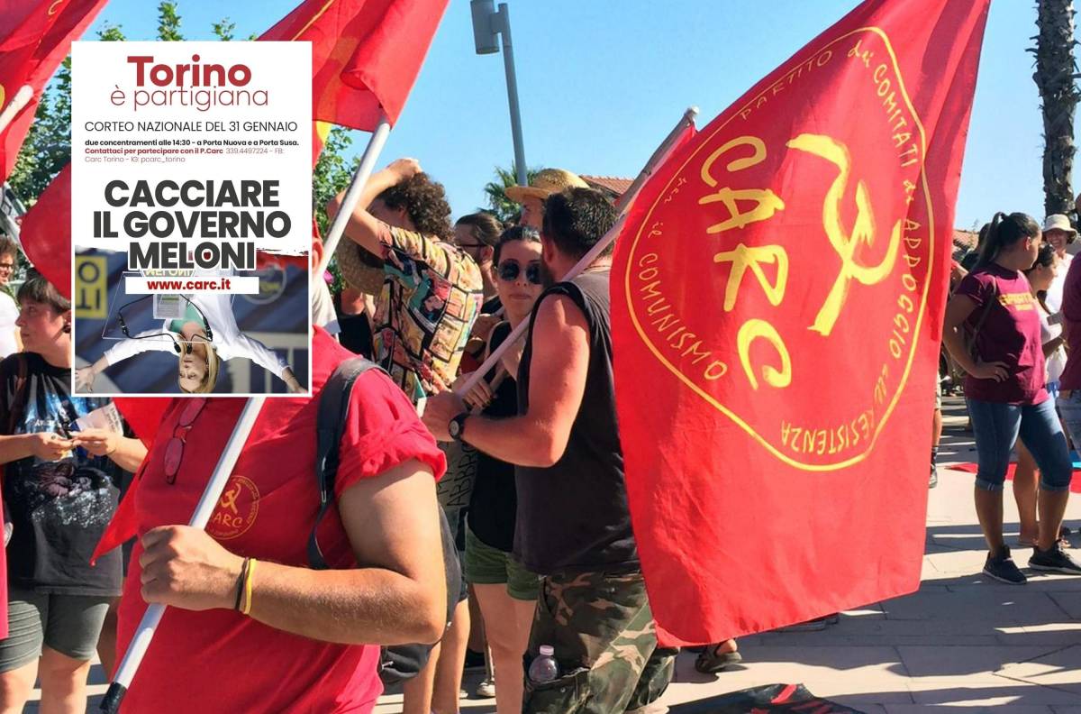 La Meloni a testa in giù: il manifesto choc dei Carc