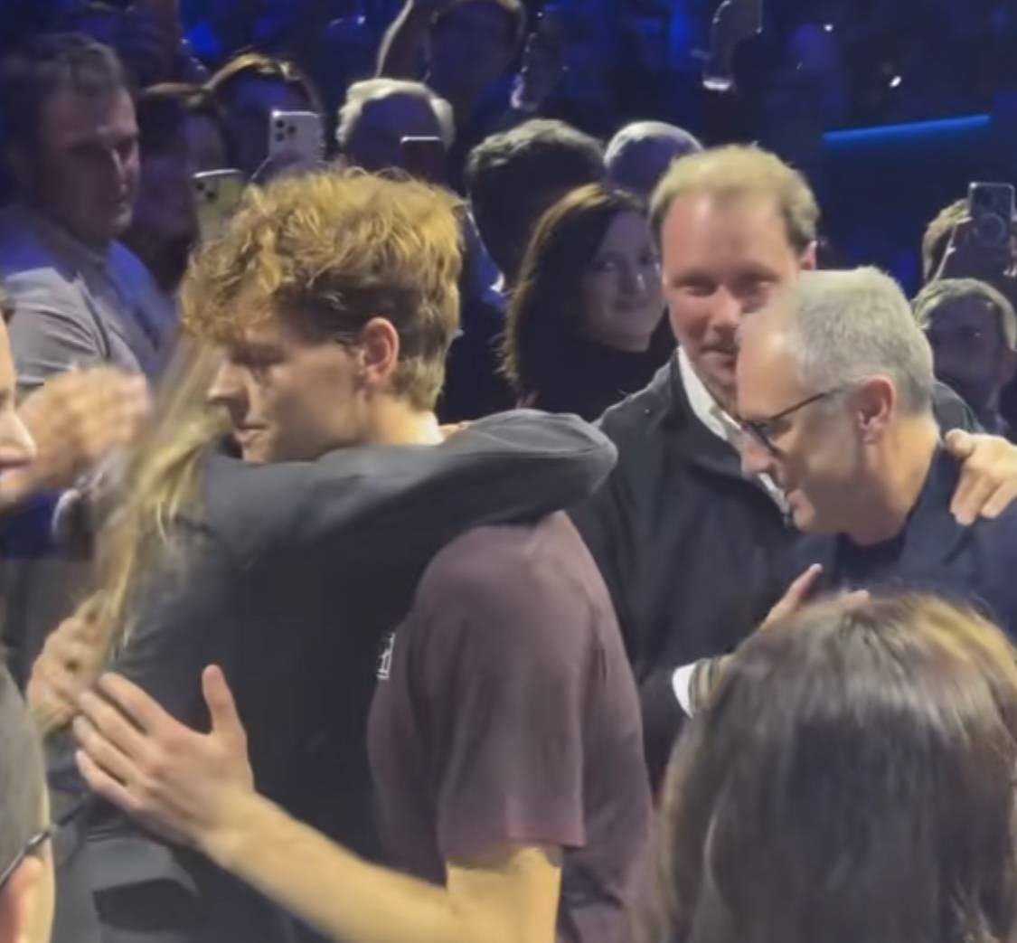 L’abbraccio a Laila, la foto col cane e la racchetta al fratello: Jannik dopo la vittoria