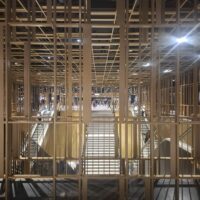 Il progetto traduce questa idea in scelte materiche precise. Il dispositivo museografico è struttura portante dell’intervento. Pavimenti e rivestimenti scuri creano un fondale in penombra. Da questa oscurità emergono i reperti: superfici metalliche dorate, teche cilindriche che custodiscono pozzi repubblicani tra V e II secolo a.C., porzioni di domus affrescate e un balneum ricollocato in situ.