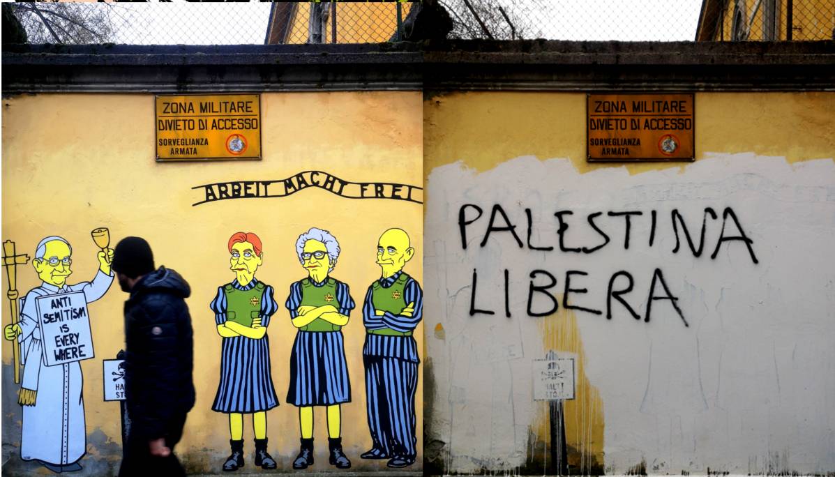 Sfregio alla memoria dell'Olocausto: pro Pal imbrattano il murale per Segre, Bruck e Modiano