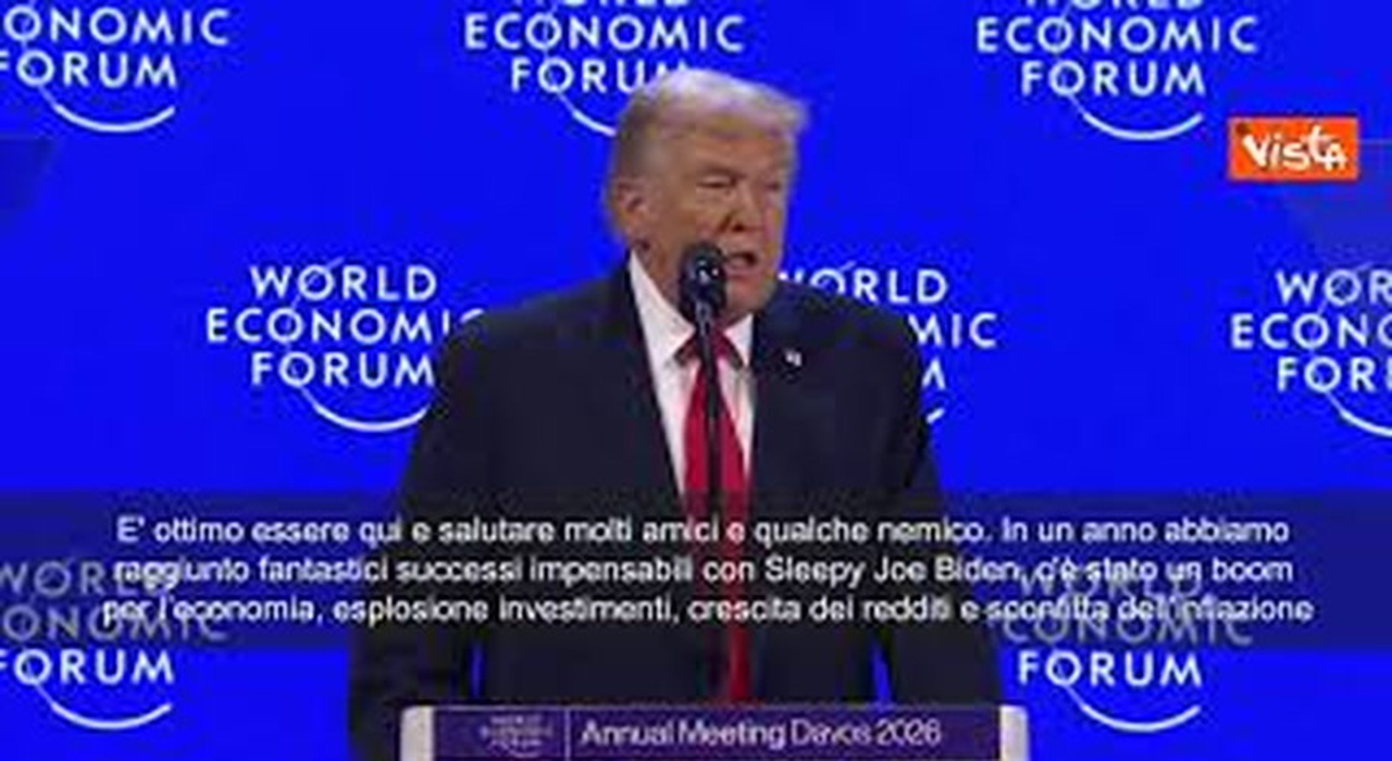 (Agenzia Vista) Davos, 21 gennaio 2026 "E' ottimo essere qui e salutare molti amici e qualche nemico. In un anno abbiamo raggiunto fantastici successi impensabili con Sleepy Joe Biden,...