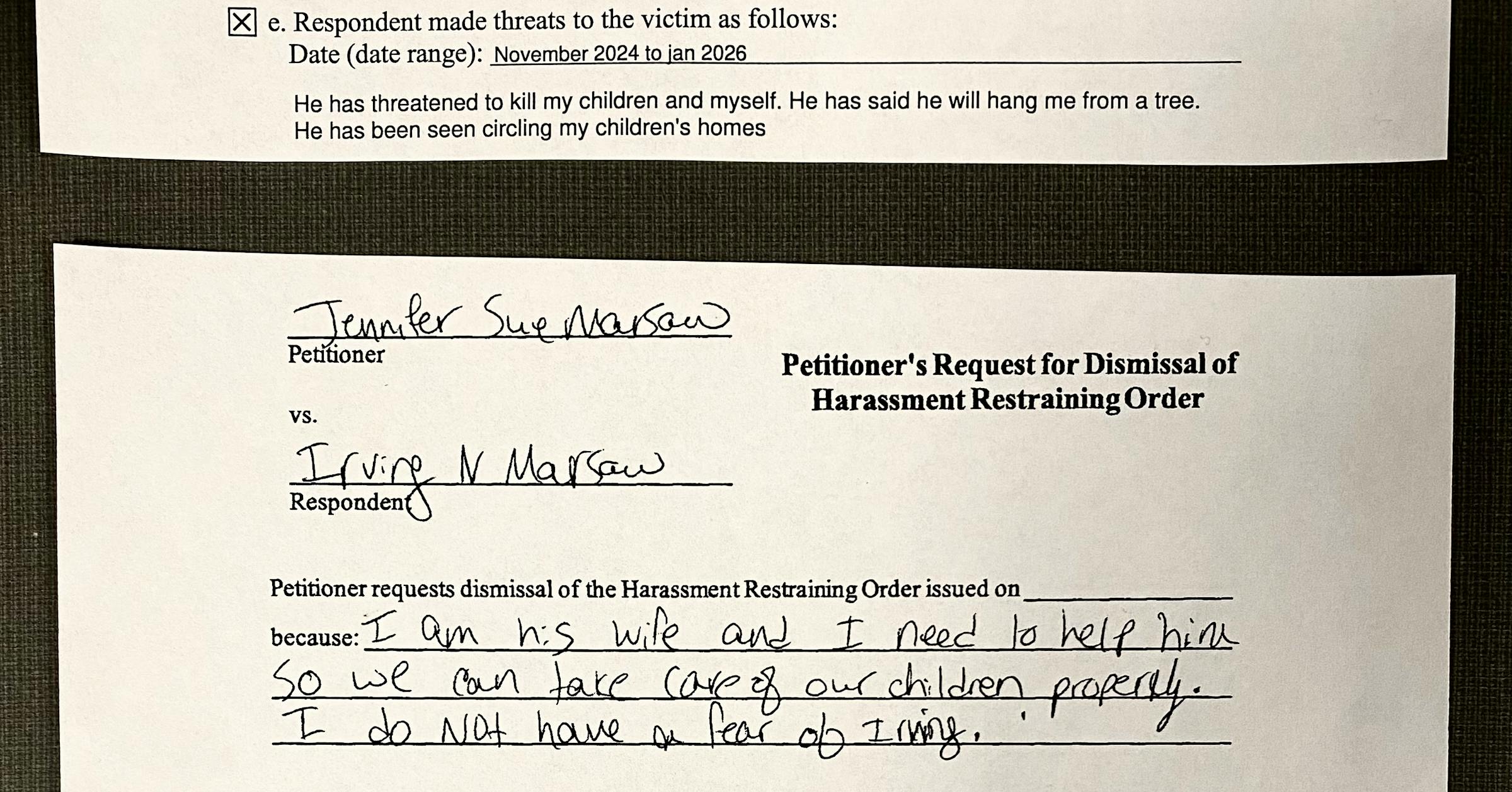 The woman had two recent orders for protection against the man, but requested they be dismissed, according to court records.