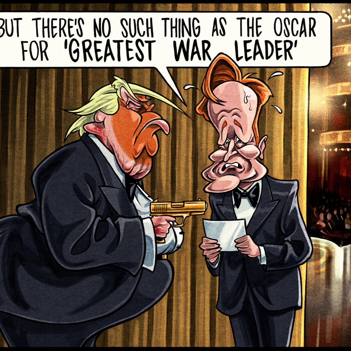 The awards ceremony, hosted by Conan O’Brien, takes place in Los Angeles on Sunday while the crisis in the Middle East rages on