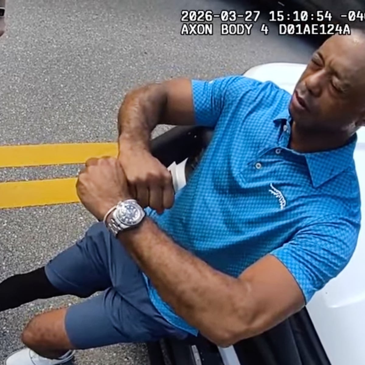 Bodycam footage of Tiger Woods’s arrest for DUI shows the golfer was surprised when he was handcuffed by police officers at the scene of a crash