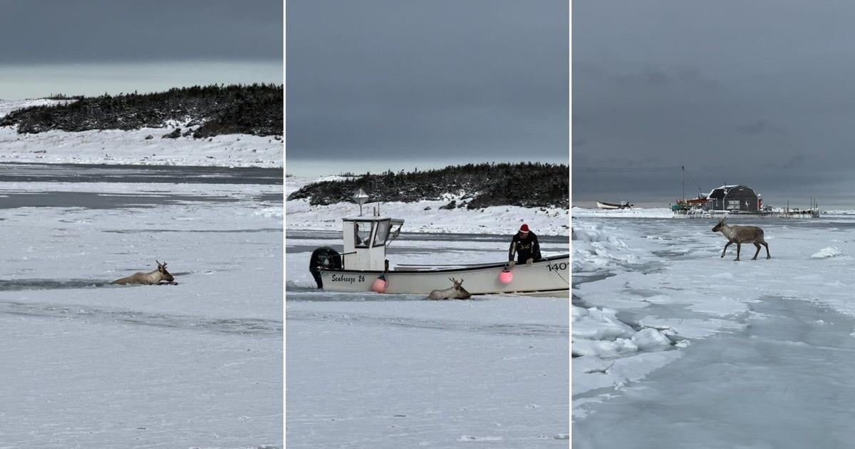 Caribou rescued by fish harvesters in icy waters of Newfoundland harbour