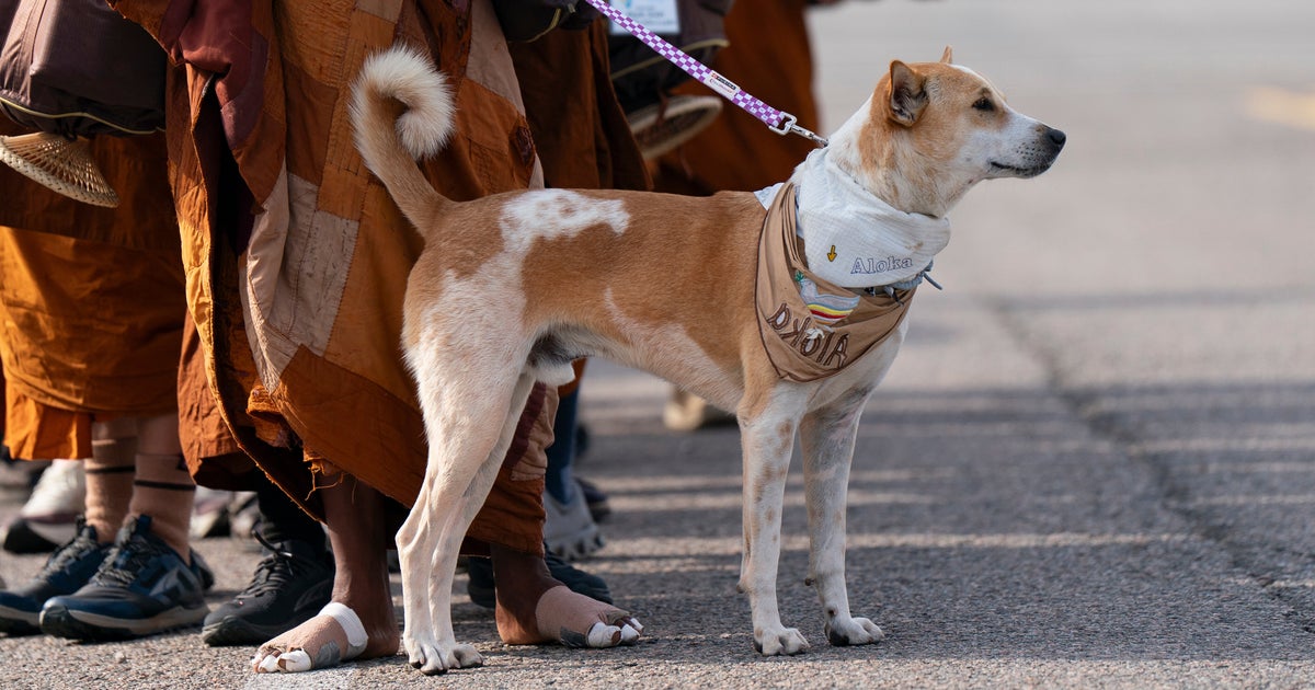 Pet owners offered support for Aloka, a rescue dog who has joined Buddhist monks on a 2,300-mile "Walk for Peace."
