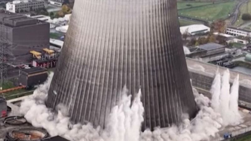 Germany demolishes cooling towers at nuclear power plant