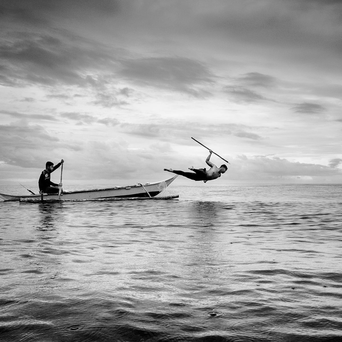 As the weather turned, the photographer caught two traditional Filipino spearfishers in motion