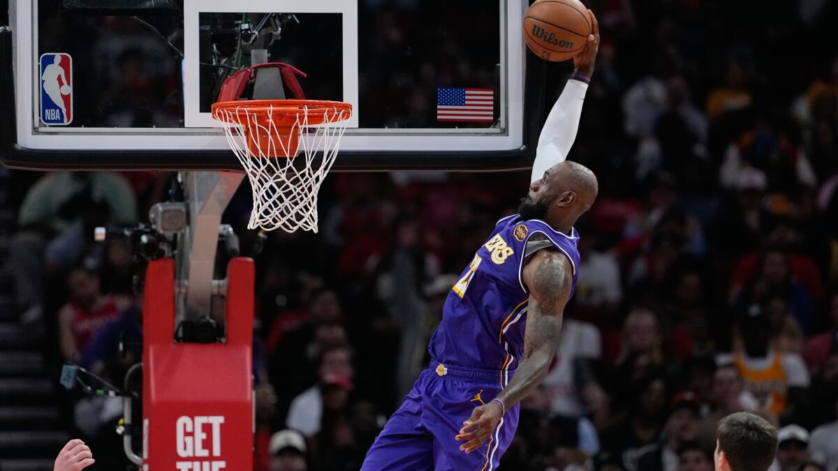 Luka Doncic is just shy of a triple-double and LeBron James misses only one shot as Lakers defeat the Rockets.