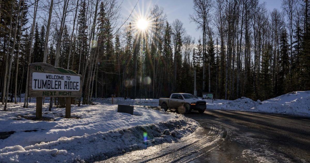 Police tape down in Tumbler Ridge as shooting victim is honoured 14,000 km away