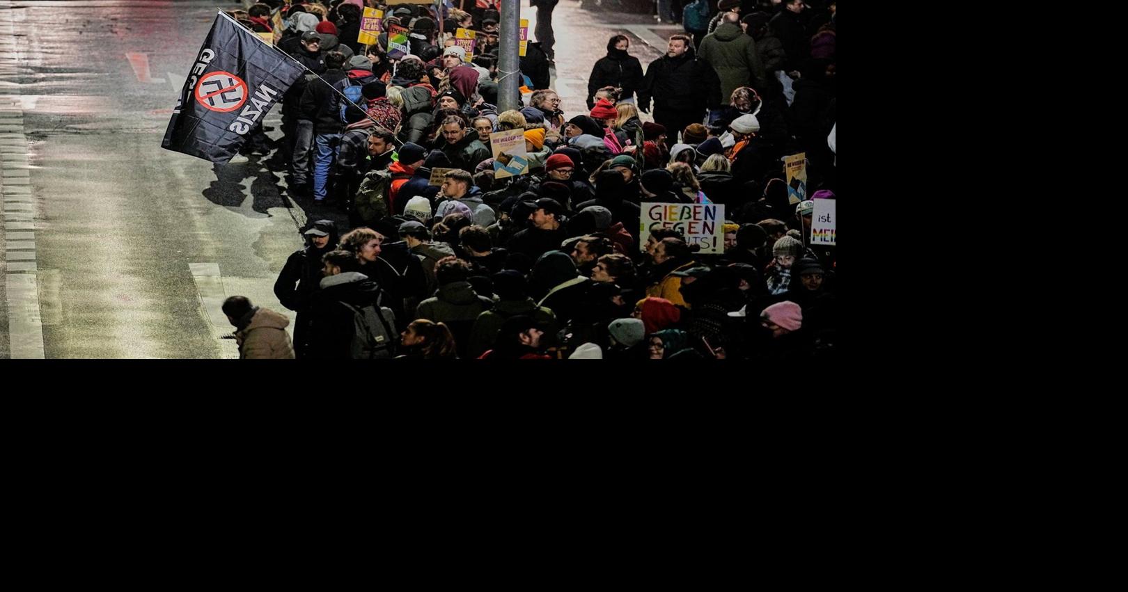 GIESSEN, Germany (AP) — Thousands of demonstrators gathered in the western German city of Giessen on Saturday as the far-right Alternative for Germany's new youth organization was set to kick