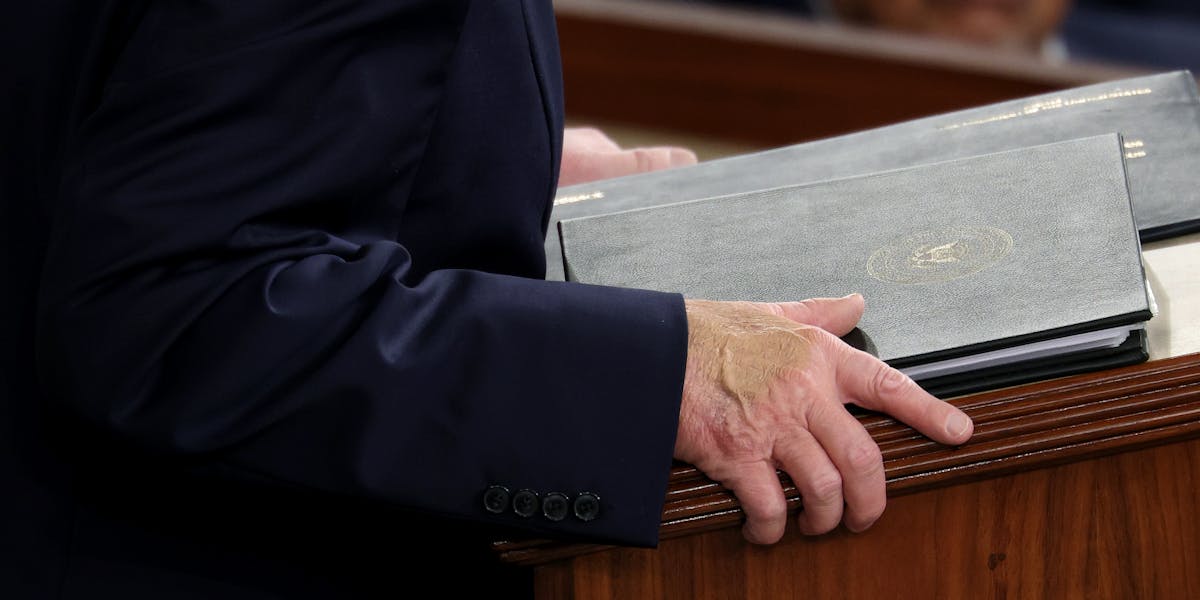 Donald Trump’s hand was hidden from view as he delivered his State of the Union address to Congress.