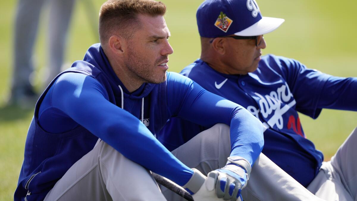 Dodgers first baseman Freddie Freeman played in his first Cactus League game of the season, hitting a two-run double against the Cleveland Guardians.