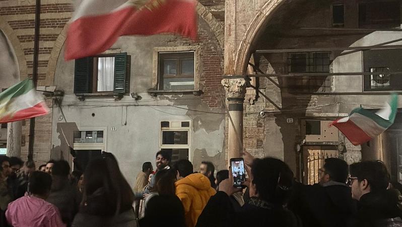 Attacco all'Iran, musiche, balli e bandiere in piazza anche a Verona per celebrare «la fine di Khamenei»