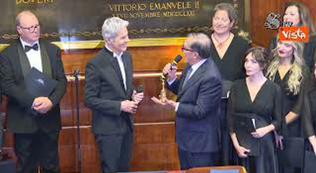 Claudio Baglioni riceve la Martinella da La Russa al Concerto di Natale al Senato