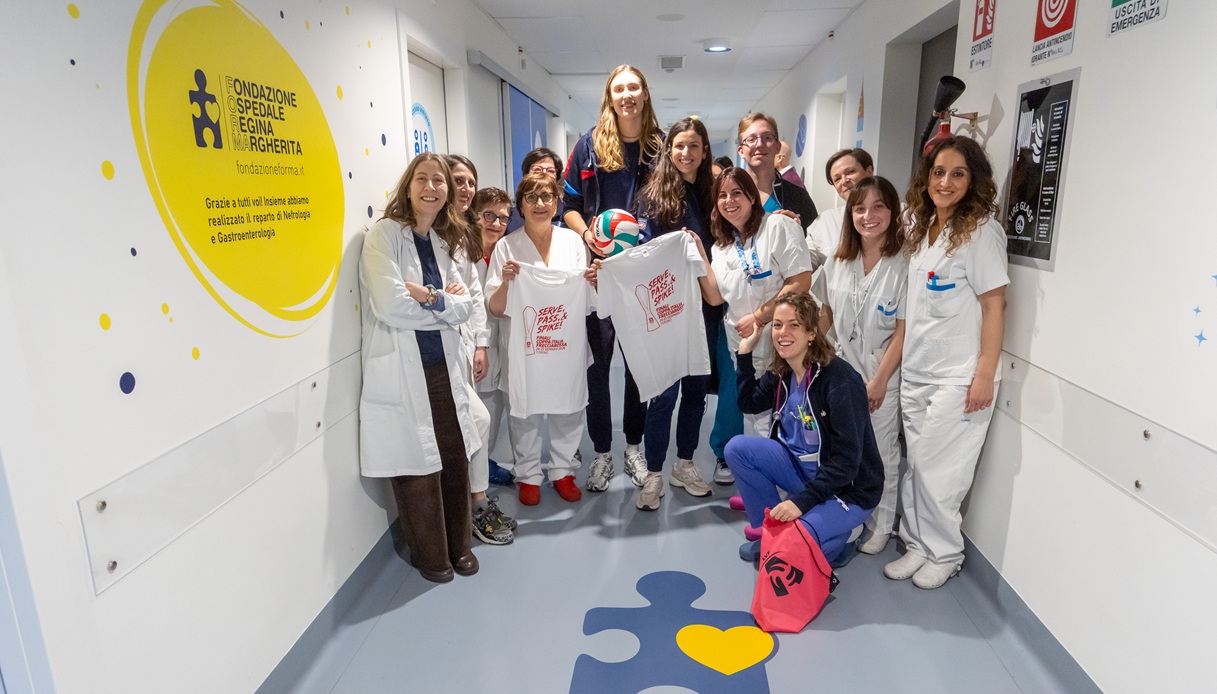 Prima della conferenza stampa di rito, dello shooting e delle iniziative promozionali, quattro portacolori di ciascuna squadra sono finite all’ospedale. Niente paura, lo hanno fatto per un’iniziativa magnifica: far visita ai piccoli pazienti dell’’Ospedale Infantile Regina Margherita di Torino. Ospiti della Fondazione Forma, Kate Antropova (Scandicci),Sarah Fahr (Conegliano), Carlotta Cambi(Novara) e Stella Nervini(Chieri), tutte protagoniste anche con l’azzurro della Nazionale che ha trionfato ai recenti Mondiali in Thailandia, hanno regalato gadget, giocattoli e magliette ai bimbi ricoverati, strappando a loro – e a tutto il personale medico e infermieristico – più di un sorriso.