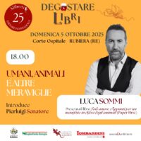Mia moglie Cecilia ha una cantina di vini a Novellara, le cantine Lombardini che compiono quest’anno 100 anni. Due ricorrenze in famiglia da celebrare: fra la presentazione di un libro e l’altra faremo aperitivi e degustazioni. Negli anni abbiamo anche brevettato la formula “Wine and Book”: vendiamo insieme un libro e un vino. Il messaggio è che, oltre al vino da mettere in tavola tutti i giorni, si può far entrare in casa anche qualche libro. Vogliamo che i libri siano conviviali e da condividere.