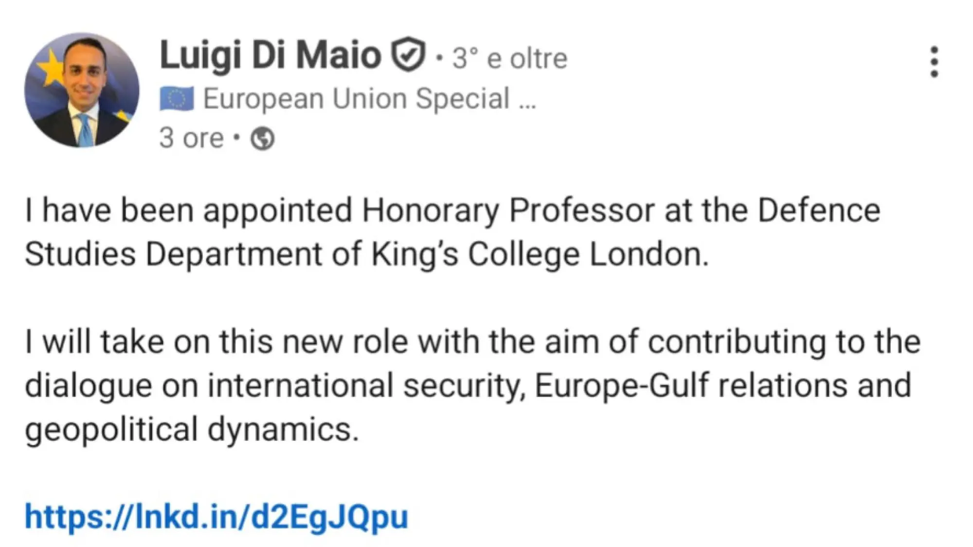 Di Maio nominato professore onorario al King's College di Londra