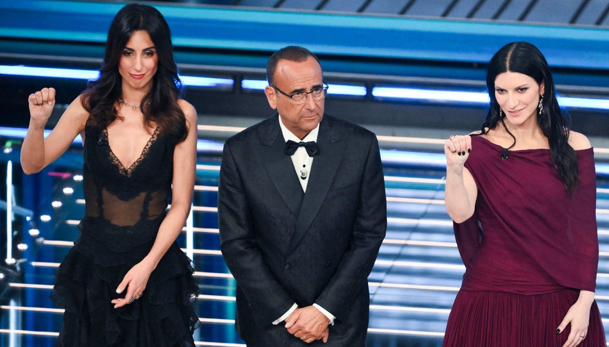 Giorgia Cardinaletti con Conti e Laura Pausini