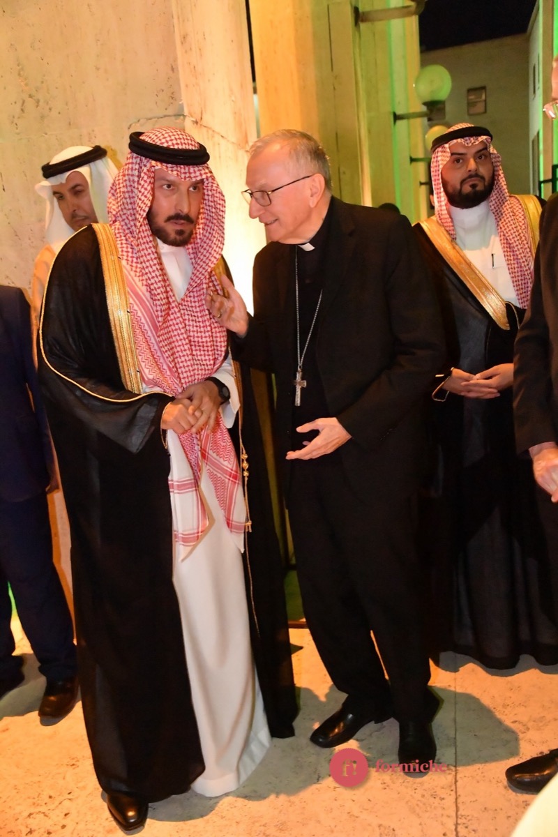 Il principe Faisal bin Sattam bin Abdulaziz Al Saud insieme a Pietro Parolin alla festa dell’ambasciata dell’Arabia Saudita (01/10/2025, Roma, Umberto Pizzi)