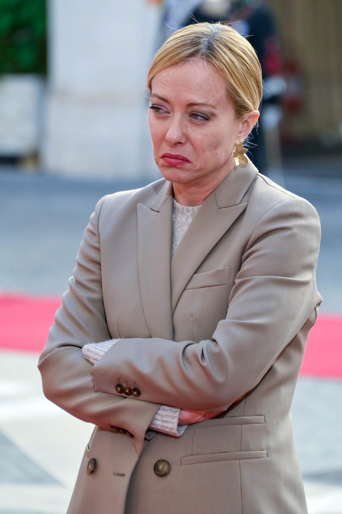 Giorgia Meloni in attesa del Presidente della Repubblica della Guinea Bissau Umaro Sissoco Embaló a Palazzo Chigi (29/09/2025, Roma, Imagoeconomica)
