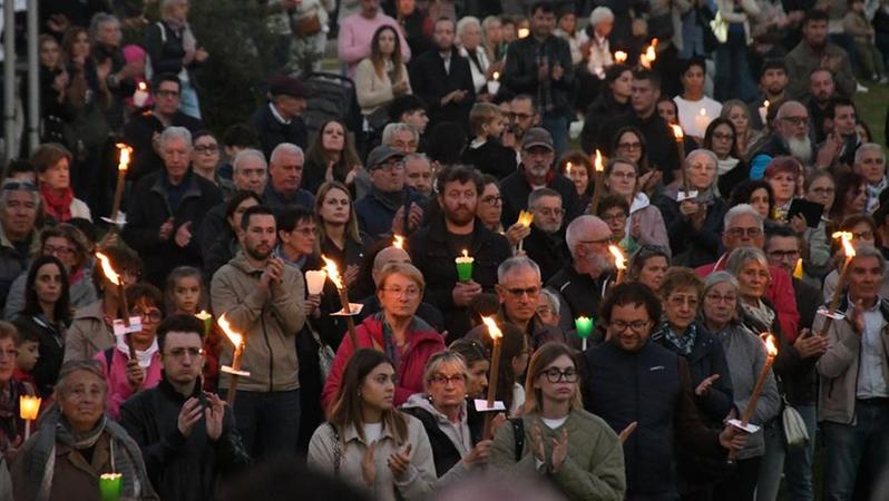 In migliaia alla fiaccolata in paese per Davide, Valerio e Marco