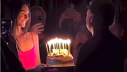 Leonardo DiCaprio spegne 51 candeline: la torta gliela «serve» Vittoria Ceretti /IL VIDEO