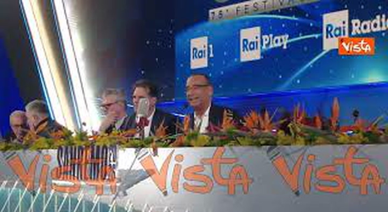 (Agenzia Vista) Sanremo, 28 febbraio 2026 Il comico Nino Frassica, ospite all'ultima puntata di Sanremo, fa divertire la sala stampa, scherzando con il conduttore Carlo Conti. Fonte: Agenzia...