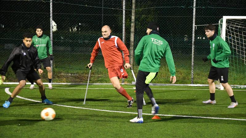 Paolo dà un calcio alla disabilità e si allena con il Quaderni: «Non tiratevi indietro, sono uno di voi»