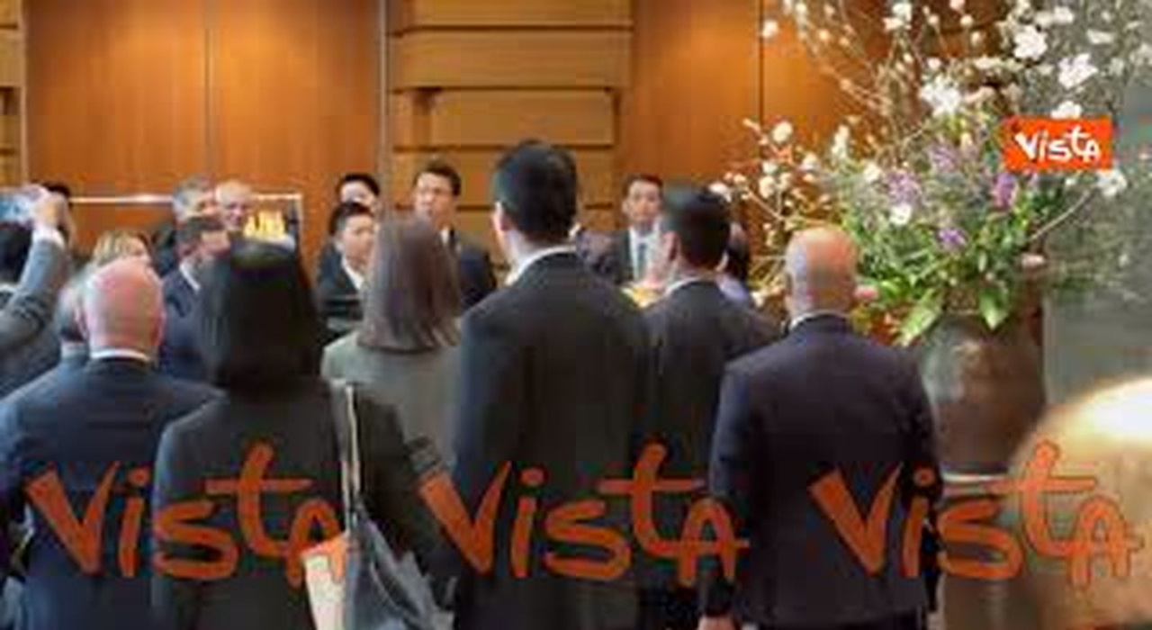 Selfie per Meloni e Sanae Takaichi di fronte al grande vaso di fiori nel Palazzo del Governo a Tokyo