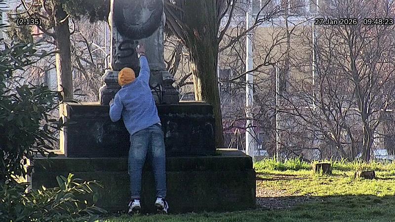 Sorpreso dalla polizia locale mentre imbratta un monumento, ancora con la bomboletta in mano