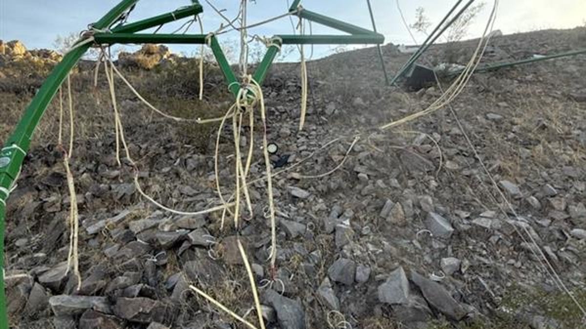 The 15-foot-tall installation was pushed several feet after being cut loose from cable ties and wiring with the strip lights torn off.