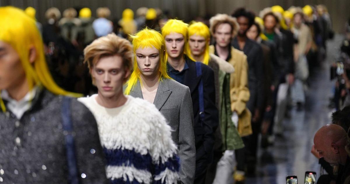 PARIS (AP) — Dior ’s menswear show arrived with a stripped-back set and a loud signal of confidence: neon-yellow wigs that read like a flag of authority planted in the