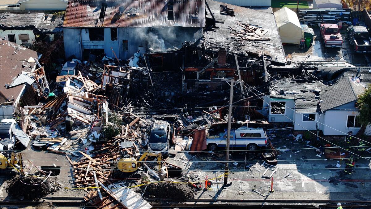 A natural gas line leak triggered a dramatic explosion that destroyed a Bay Area home on Thursday, injuring six people and damaging several other properties.