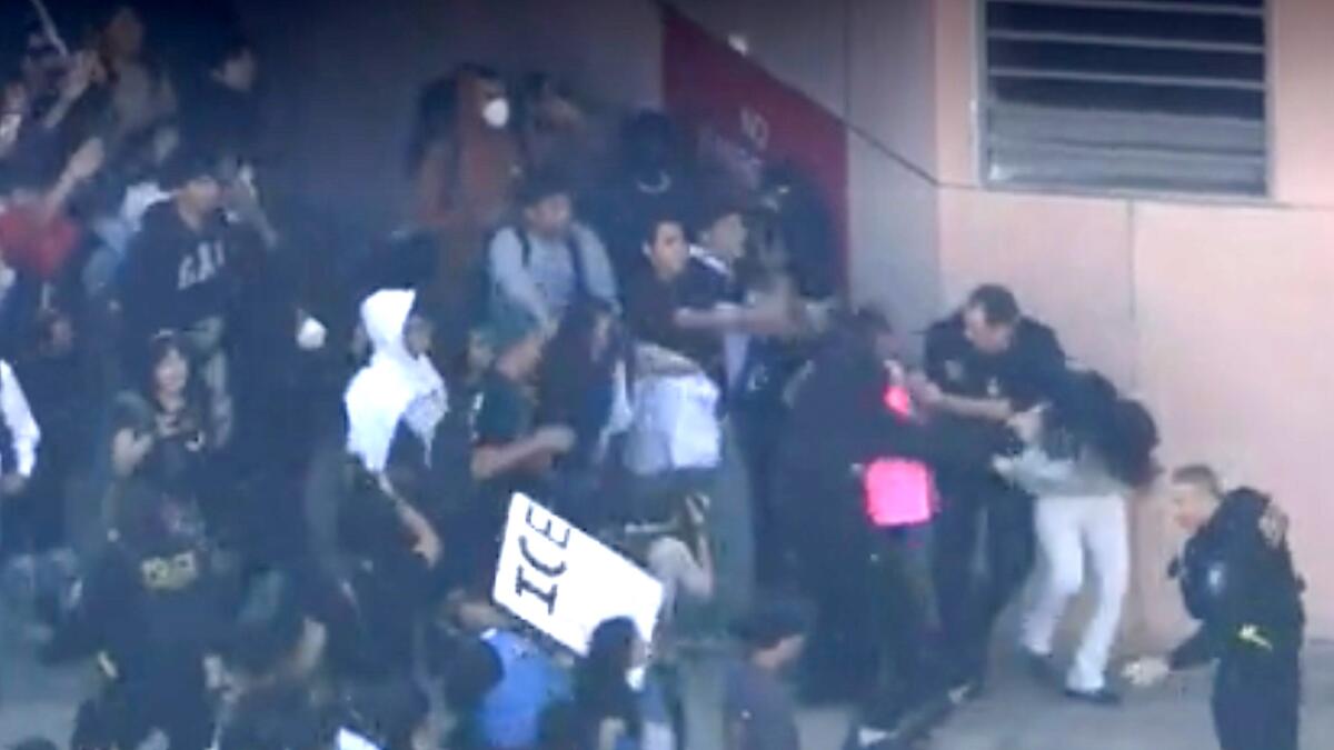Federal agent injured in clash with protesters in Downtown L.A. during student walkout