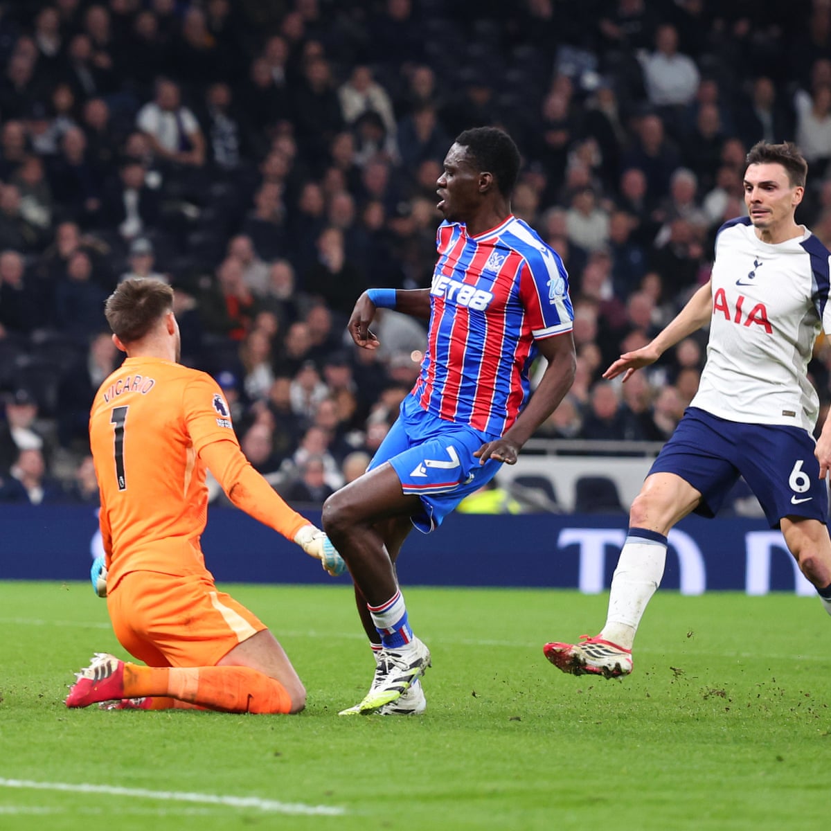Micky van de Ven was sent off as 10-man Tottenham slumped to a 3-1 home defeat against Crystal Palace to increase their Premier League relegation fears