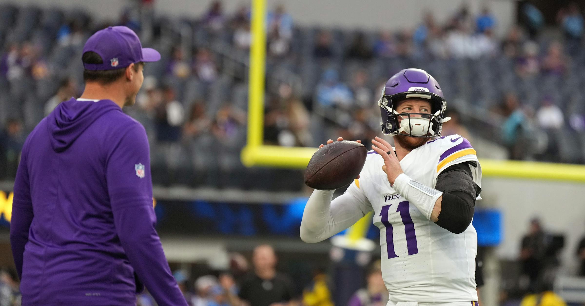 The Vikings are bringing back veteran Carson Wentz to a quarterback room that now also includes Kyler Murray and J.J. McCarthy.