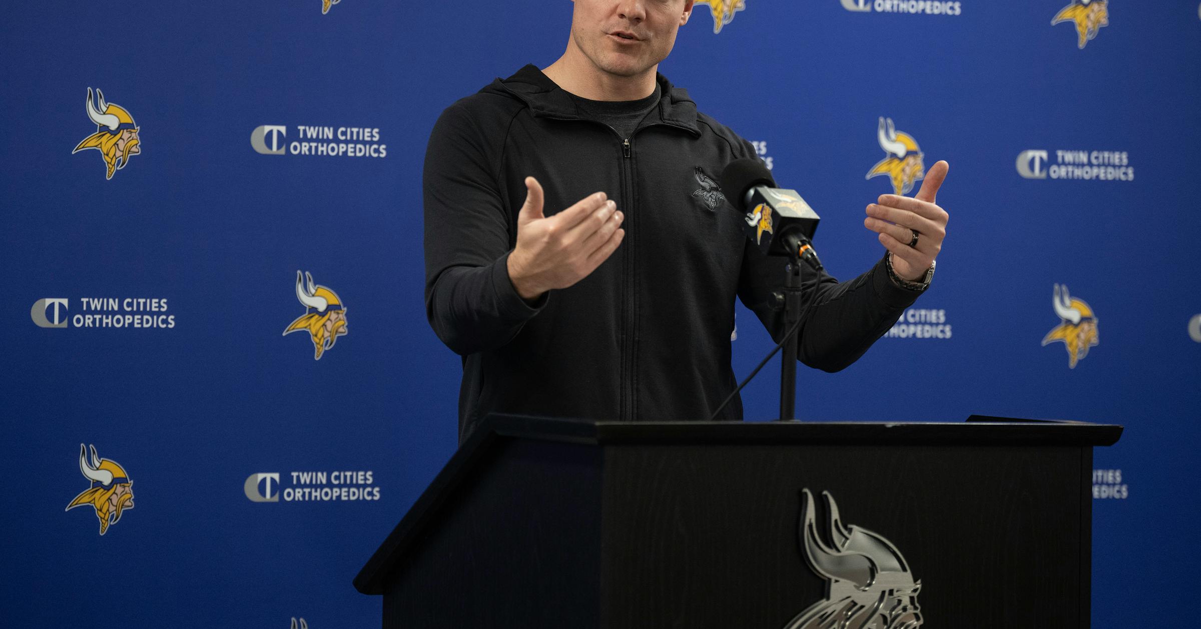 Vikings coach Kevin O'Connell and GM Kwesi Adofo-Mensah said Jan. 13 they plan to bring in competition for quarterback J.J. McCarthy.