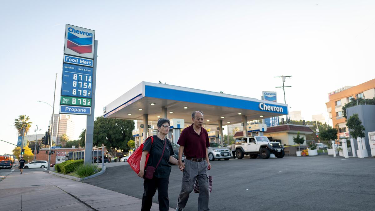 The drab Chevron at the edge of Chinatown these days is charging nearly $9 a gallon, $3 more than the Los Angeles area's average of $5.72.