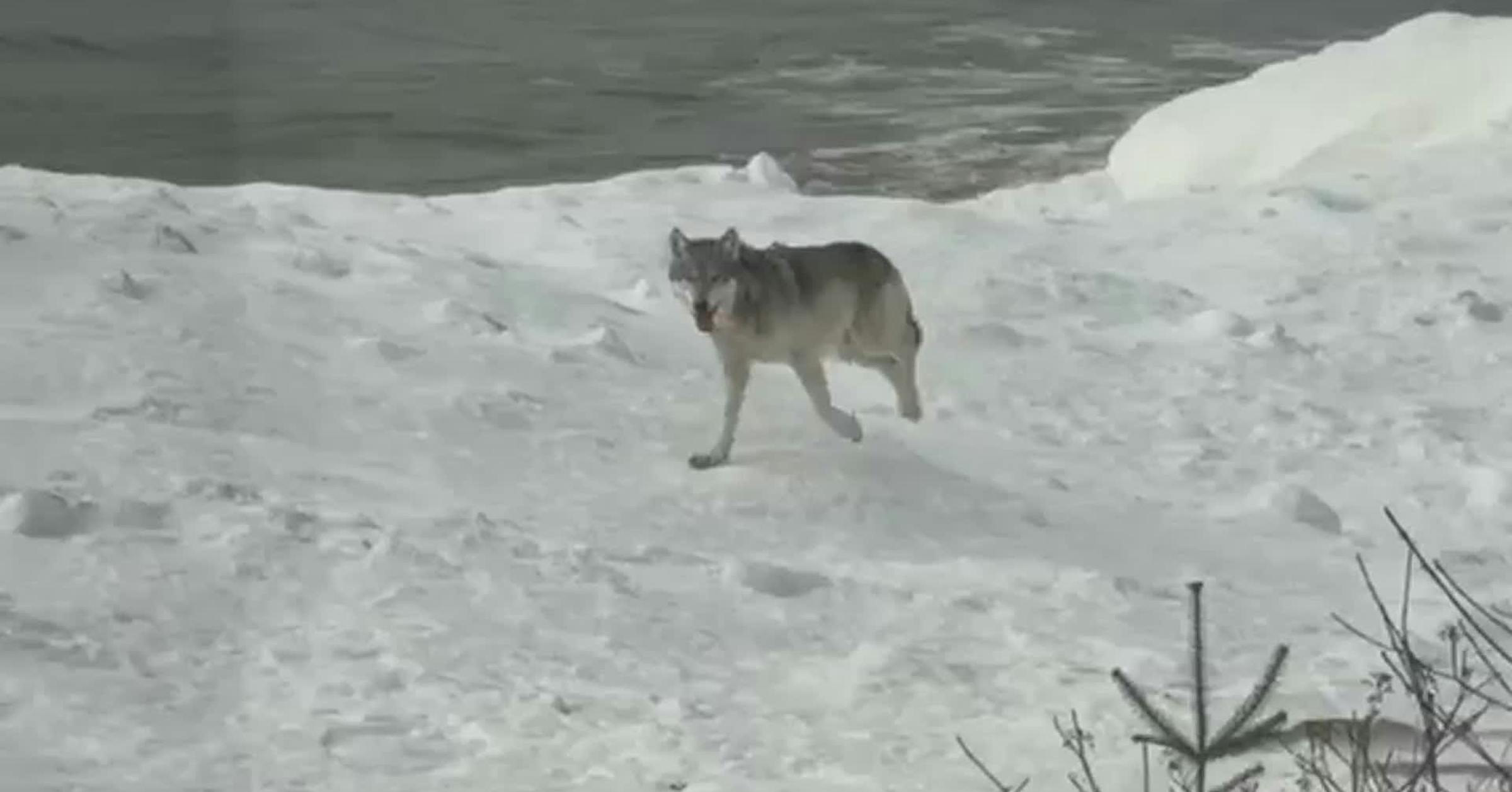 Jennifer Starbright, of Grand Marais, caught a 20-second video of her first wolf running past her shoreside home.