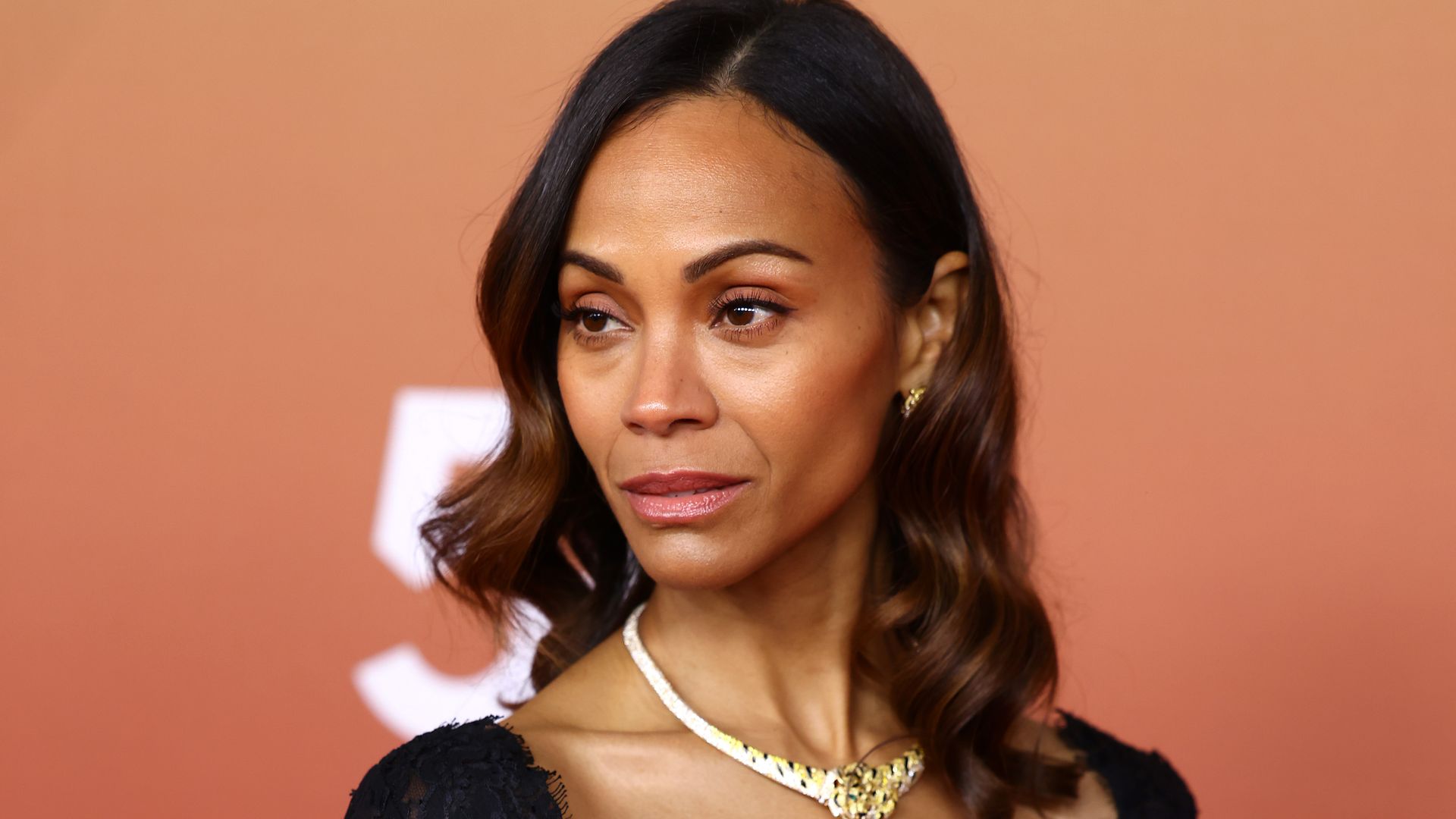 Zoe Saldaña turns heads in sculptural leather silhouette and gold jewelry for ‘Avatar: Fire and Ash’